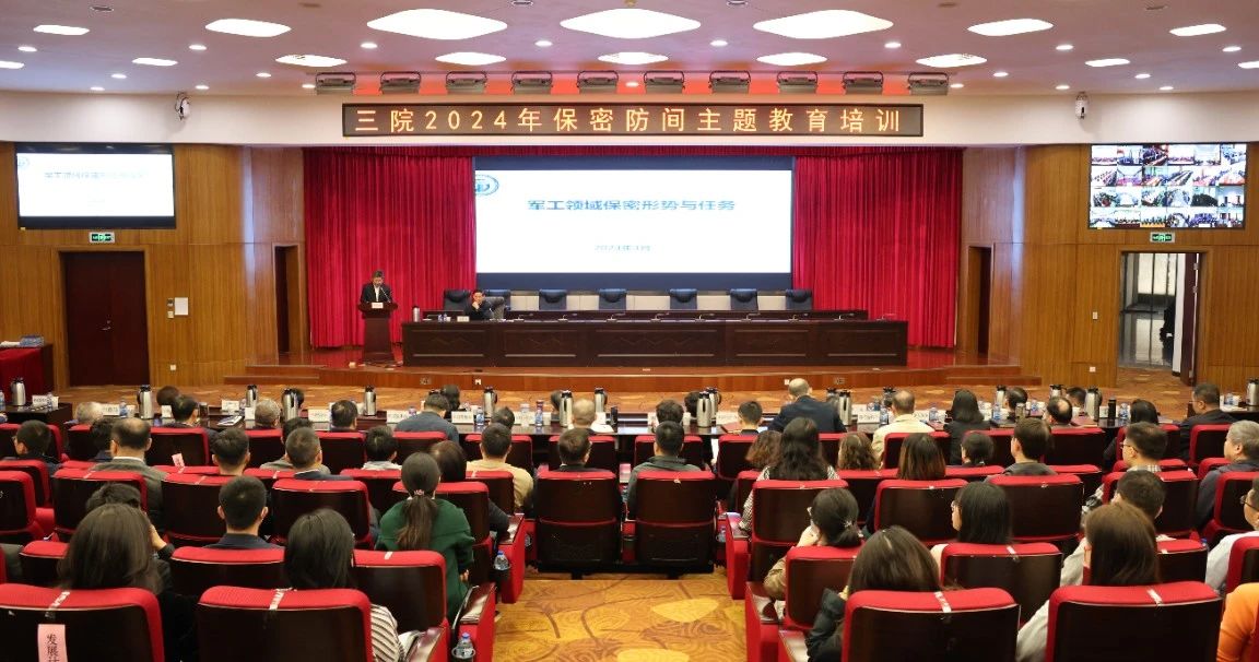 今年是习近平总书记提出总体国家安全观10周年,4月15日是第9个“全民国家安全教育日”,在这个特殊的日子,三院举办了2024年保密防间主题教育培训,启动第36个“全国保密宣传教育月”系列宣教活动。三院全体在家院领导、科技委领导、院本部全体职工、院属单位中层以上领导干部以及其他涉密人员2000余人参加了此次培训。培训设院本部主会场和29个视频分会场。