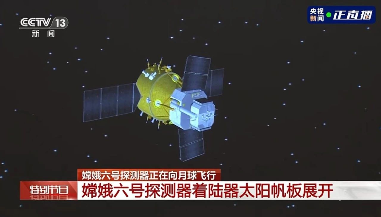 5月3日17时27分,嫦娥六号探测器由长征五号遥八运载火箭在中国文昌航天发射场发射,之后准确进入地月转移轨道,发射任务取得圆满成功。嫦娥六号探测器由此开启世界首次月球背面采样返回之旅,预选着陆和采样区为月球背面南极-艾特肯盆地。