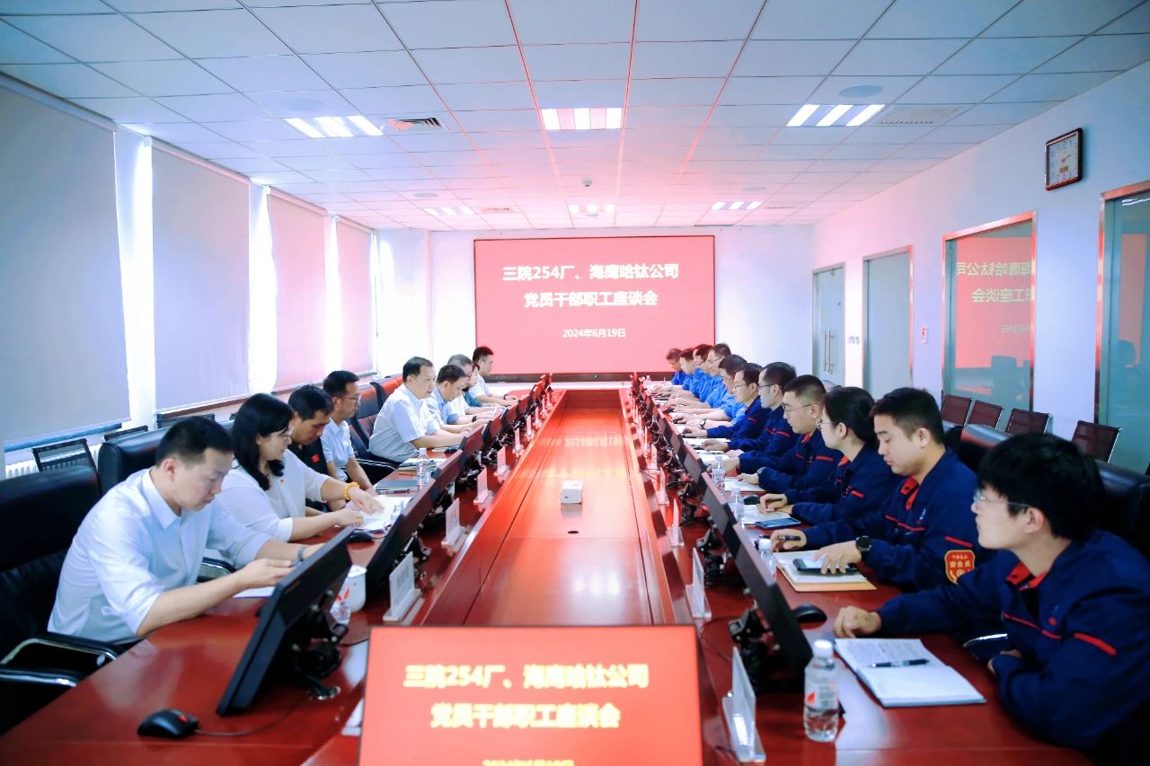 6月19日,集团公司党组副书记黄兴东到三院254厂、海鹰哈钛开展工作调研,并与基层党支部书记、一线技术和技能骨干、青年职工代表等进行座谈交流。集团公司总部相关部门领导,三院党委书记施毅、本部相关部门领导、在哈企业主要领导参加调研、座谈交流。