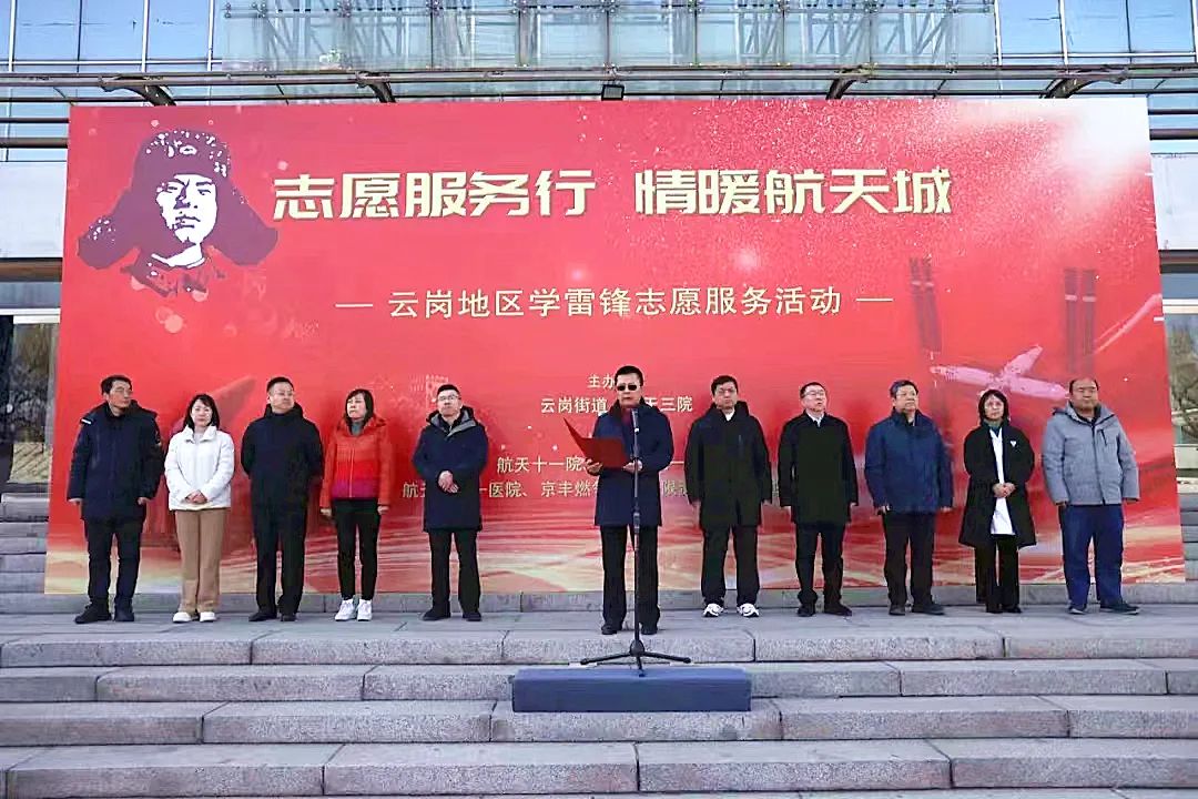 崔玉平在致辞中指出三院多年来始终与云岗街道紧密联系,大力支持举办学习“雷锋精神”主题活动。近年来,三院志愿者队伍逐渐发展壮大,成为了云岗地区重要的志愿服务团体,一代代三院志愿服务者将学习“雷锋精神”与践行社会主义核心价值观、传承弘扬航天精神相结合,在建设航天强国的伟大征程中踔厉奋发、勇毅前行,充分展现出由衷热爱、无限忠诚、不懈追求和勇于担当的新时代飞航青年特质,通过开展志愿服务活动,将“雷锋精神”代代相传。