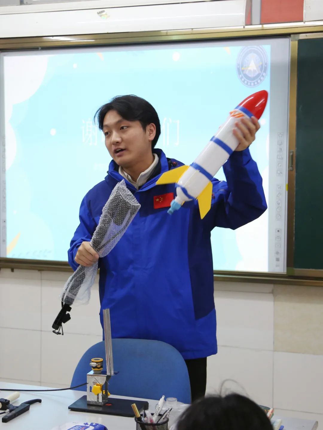 301所、33所、159厂青年通过讲述航天知识为石景山华奥学校的孩子们送去了一堂别出心裁的科普体验课