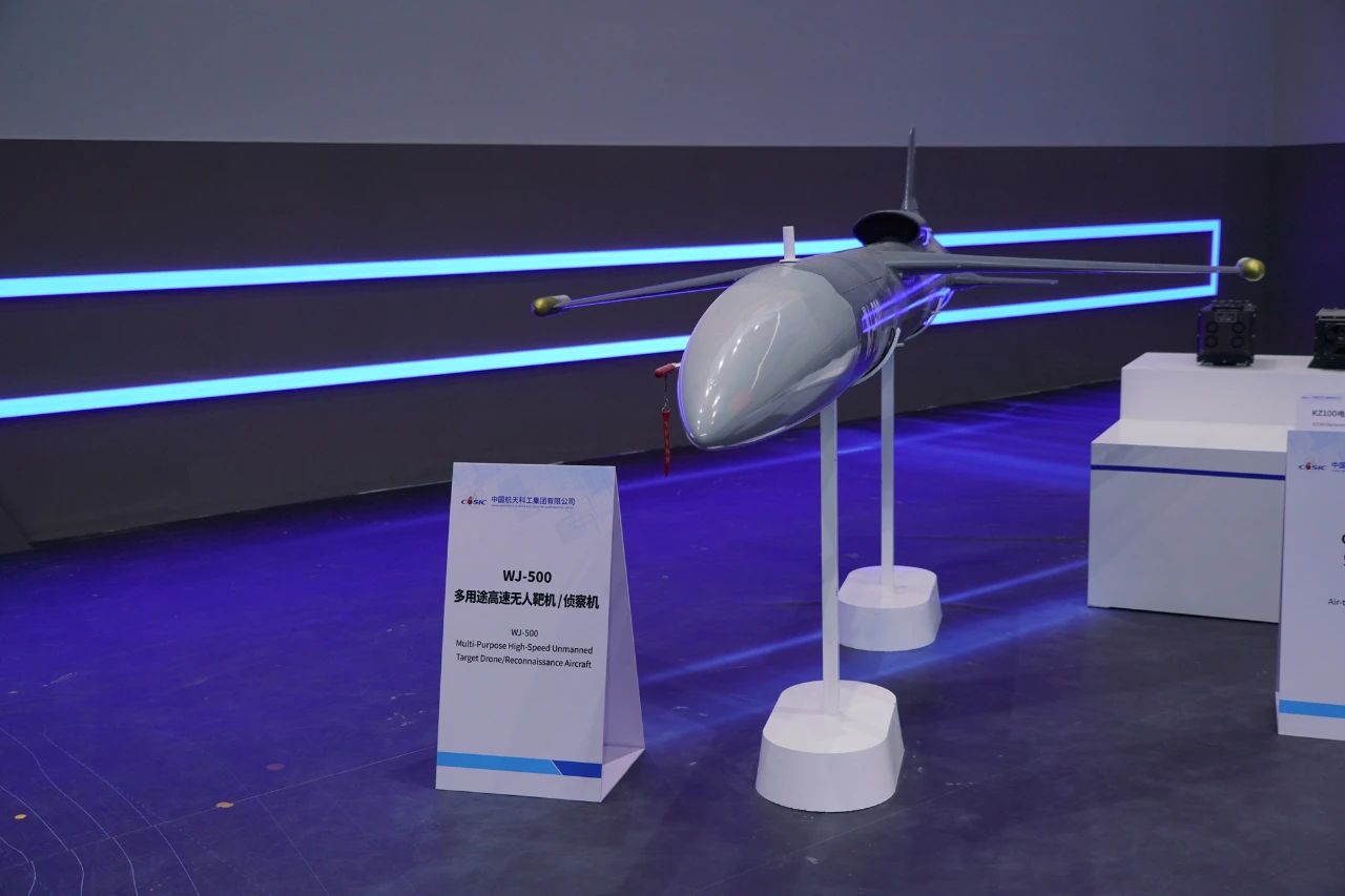 WJ-500无人机采用小型涡喷发动机作为动力装置,具有作战部署灵活、高通用性、使用维护简便等显著特点,可搭载光电侦察、合成孔径雷达等多种设备执行区域侦察、目标指示和毁伤效果评估等作战任务。