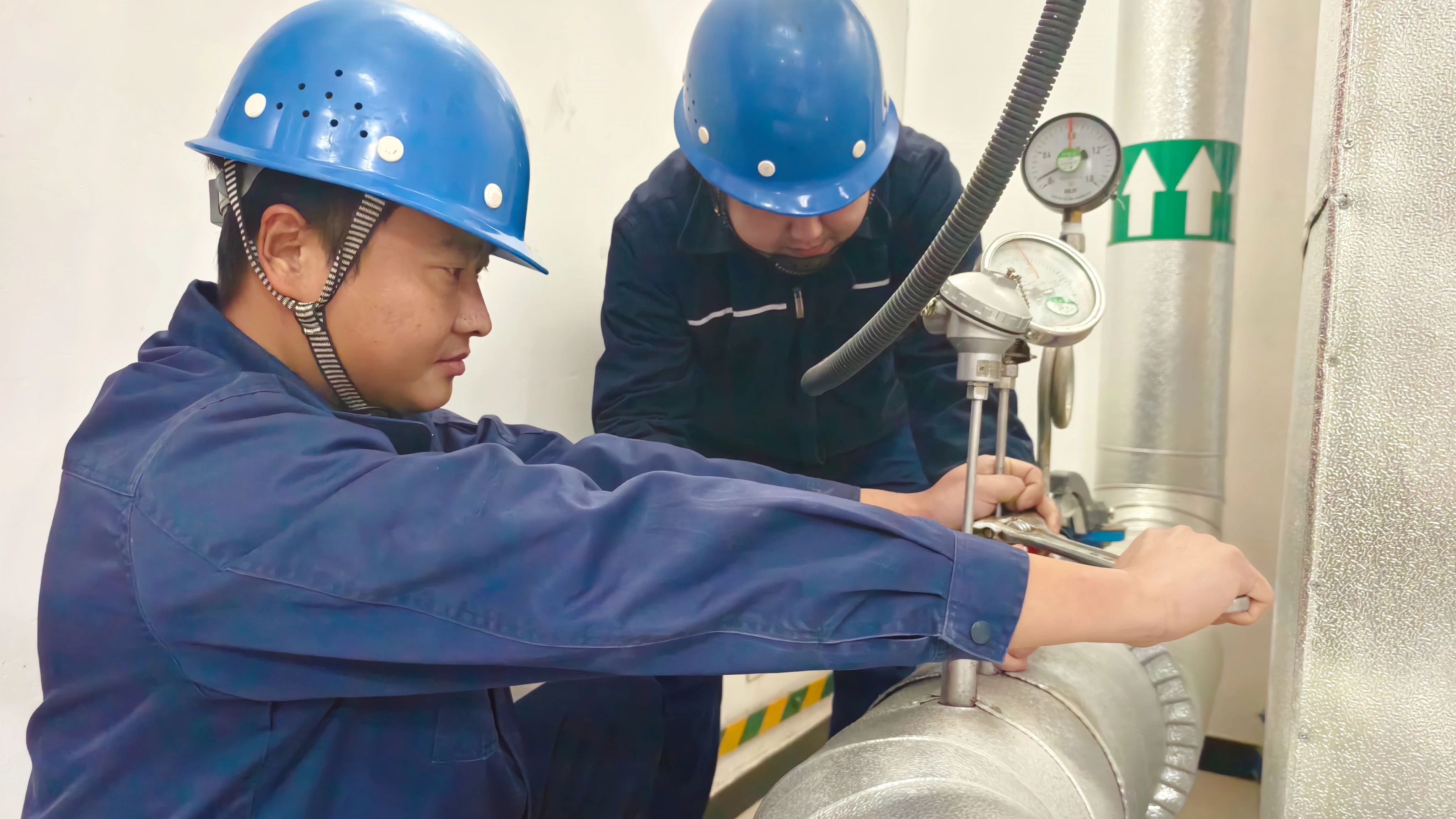 “只有第一时间到达现场,分析原因,组织力量,才能第一时间解决问题。”海鹰安全公司动力保障团队值班员在深夜巡视过程中发现锅炉房供热板式换热器温度计内部进水压力增大,表盘出现损坏现象,存在突发漏水隐患。故障就是命令,水暖班组以最快速度到达故障现场,查看系统运行情况,及时采取处理措施,确保供热系统的平稳运行,全力以赴为工业园区带来高质量的动力服务保障。