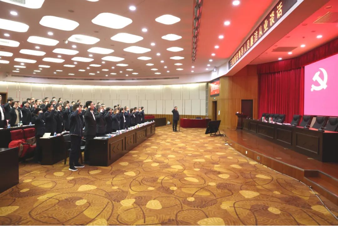会上,与会人员共同观看了警示教育片,通报了典型案例。张文来带领与会人员面向党旗庄重宣誓,重温入党誓词,激励新任领导人员不忘初心、牢记使命,对党忠诚、廉洁自律,保持状态、担当尽责。