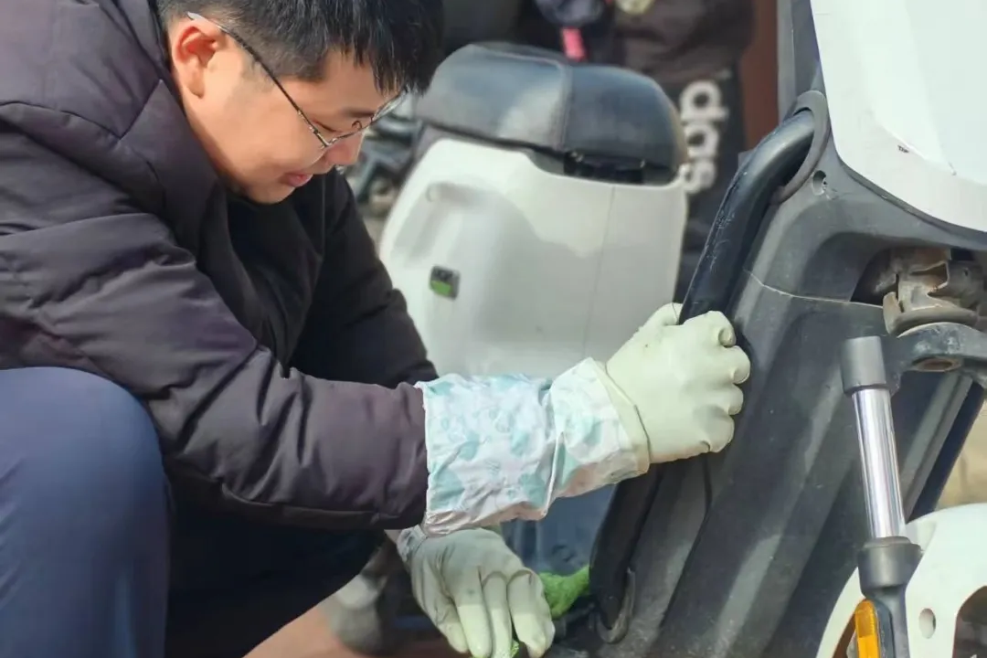 ▲8359所、磁电总体部青年对社区辖区内的健身器材、宣传栏、快递柜等公共区域进行全面清理,拂去冬日的尘埃、绽放春日的明媚。