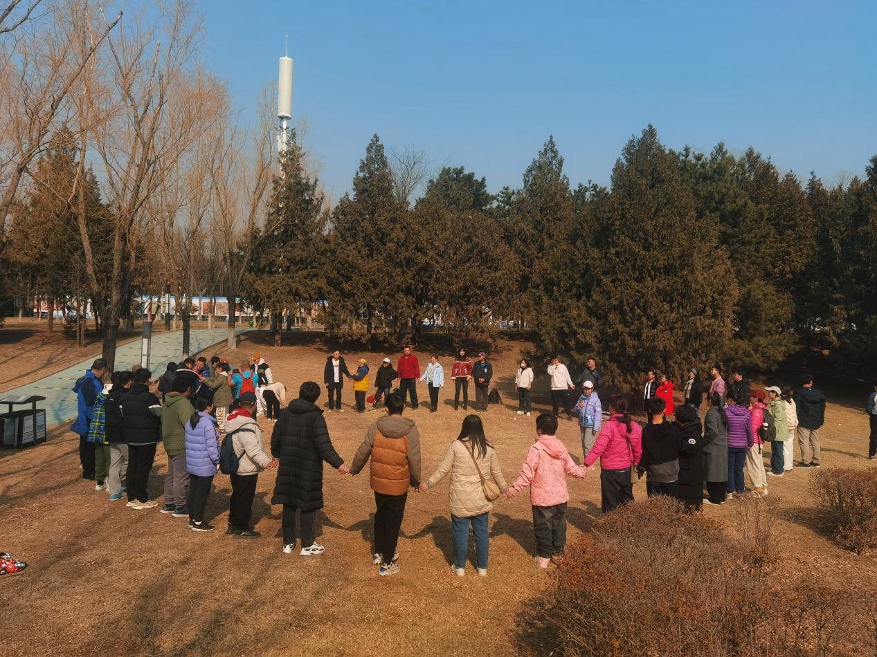 ▲33所、教育中心青年志愿者与“星星的孩子”结成帮扶对子,共同完成春日徒步和趣味游戏。