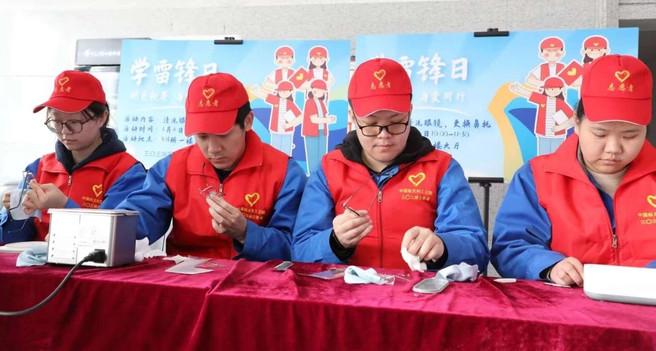 ▲303所团委举办了“明亮视界 与爱同行”志愿服务活动,为所内职工提供更换鼻托和超声波清洗眼镜服务。