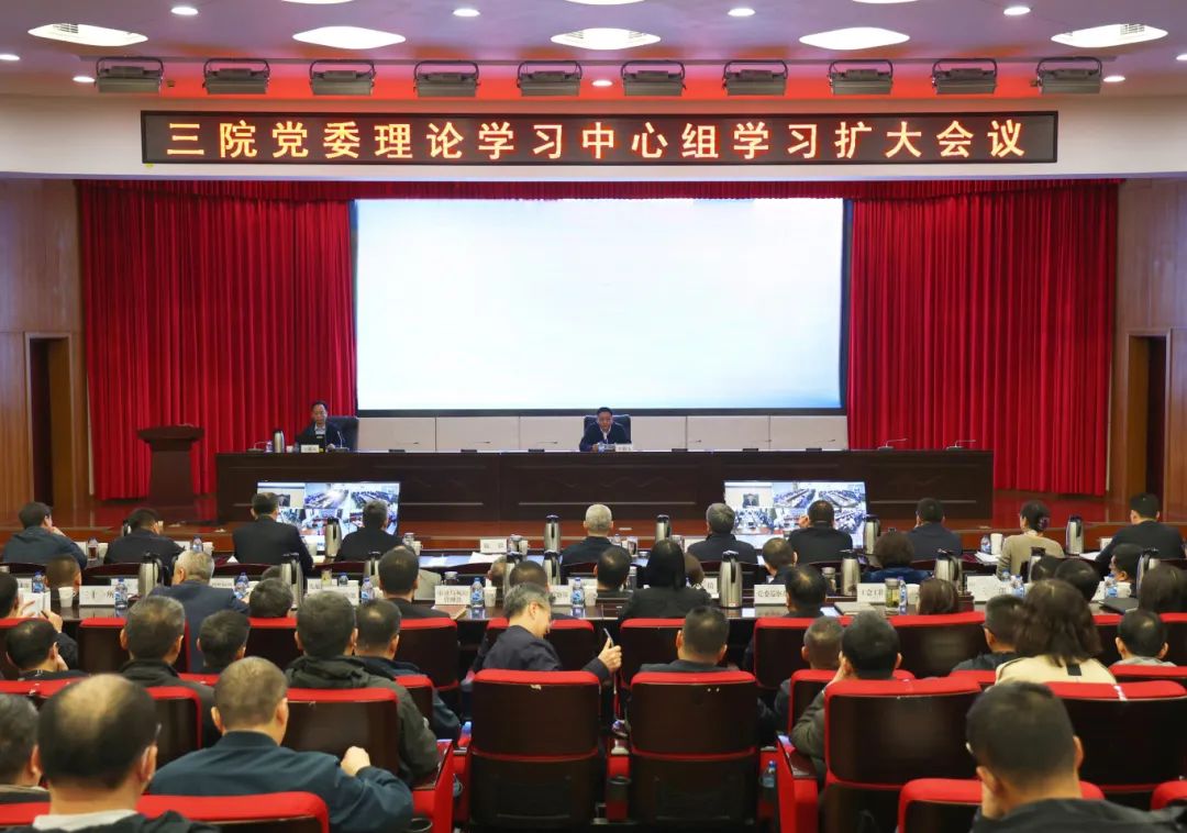 三院全体在家院领导、本部各部门负责人,院属单位领导班子成员,部分单位相关部门负责人等300余人在主会场和视频分会场参加学习。三院党委书记施毅主持学习会。