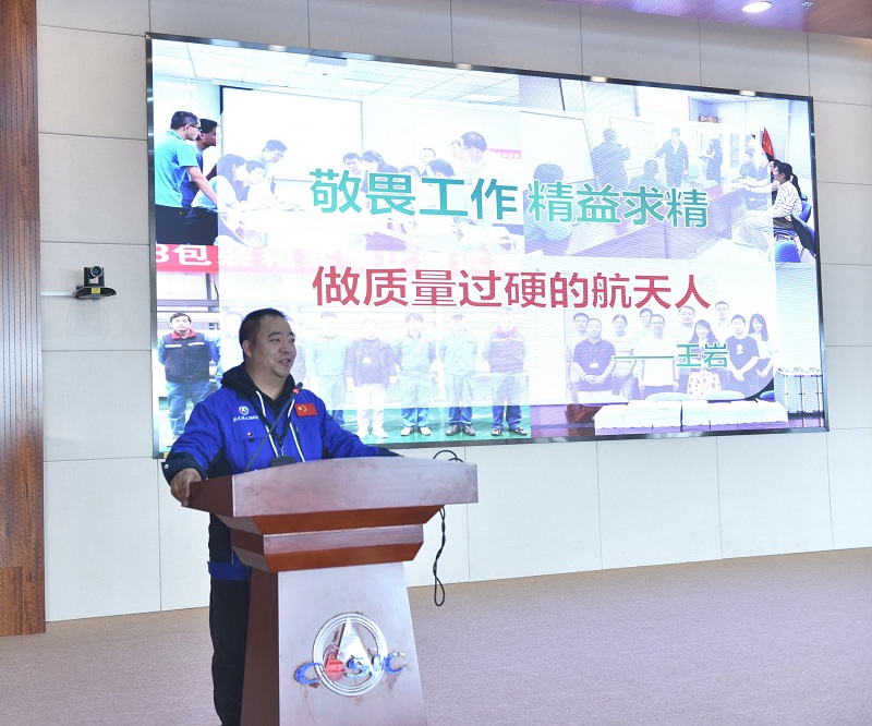 王岩以《敬畏工作,精益求精,做质量过硬的航天人》为题,分享了自己在工作中保持敬畏之心、严于修身律己、追求精益求精的故事。