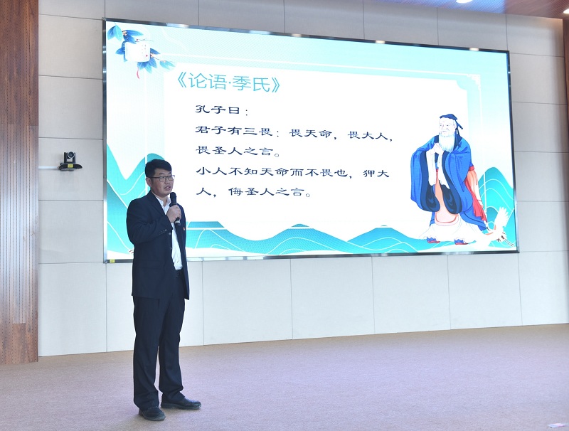 孔子曰:君子有三畏:畏天命,畏大人,畏圣人之言。小人不知天命而不畏也,狎大人,侮圣人之言。在“诵经典”环节,第六技术部党支部书记张剑带领大家一同诵读《论语》中的经典。他指出,怀有一颗敬畏之心,行事有约束,心中有信仰,养成一点浩然之气,守在规矩中,居在方圆内,一切安宁都会不期而至,一切美好都会如约绽放。