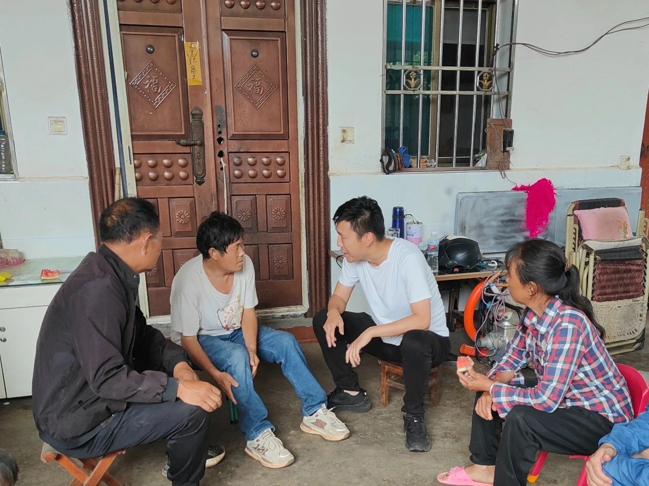 穿过学校,猛然记起包中的药要带给一位双膝突发疾病的村民。胡大爹原是在工地务工的建筑工人,但今年突发的腿疾让他行走困难几乎丧失行动能力。作为家中主要劳动力的他无法工作,家中的老伴要照顾胡大爹和小娃的同时更是无法外出务工。为此,我和驻村工作队便做起了胡大爹的“双腿”,不断往返于卫生所、村委大院和街道办事处办理临时帮扶手续。在大家的努力下我们为胡大妈争取到了公益性工作岗位,实现了家门口就业,同时也提供了一系列帮扶措施保障胡大爹一家渡过难关。当一切办理妥当,听到胡大爹眼含热泪说出的“谢谢啊!”时,我觉得一切付出努力在这一刻都是值得的。