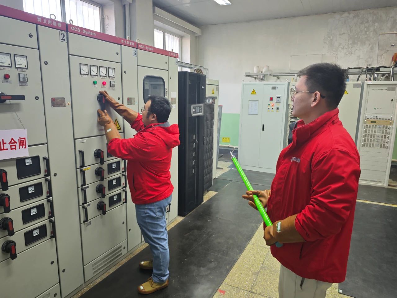 为此,突击队长命令队员们迅速穿戴好防护用品,进入电力机房进行电力倒闸操作。