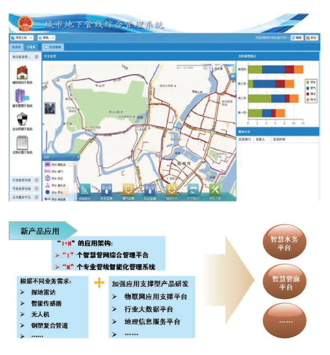 以智慧产业平台公司为依托,运用航天系统工程理论和现代信息技术创新构建了“1+N+1”智慧城市地下管线综合管理体系,形成了面向管线全生命周期管理和安全管理的智慧管网整体解决方案,研发了具有自主知识产权的智慧管网综合管理系统、专业管线智能化监控系统和智慧管廊综合管理系统等三大产品体系,研制了探地雷达、精确定位标识器、高精度传感器等核心产品,打破了国外技术垄断,实现了地下管线的实时监控、预警和应急联动,显著提升了城市地下管线综合管理水平。