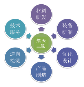 三院作为国防科技工业激光增材制造研究应用中心的组成单位与中国航天科工集团增材制造创新中心的挂靠单位,在增材制造技术研究与产业发展方面开展了大量工作,承担了包括国家重点研发计划在内的多项国家、国防、地方各级研究课题。目前已经初步建立了涵盖“材料—装备—服务”的全产业链发展模式。