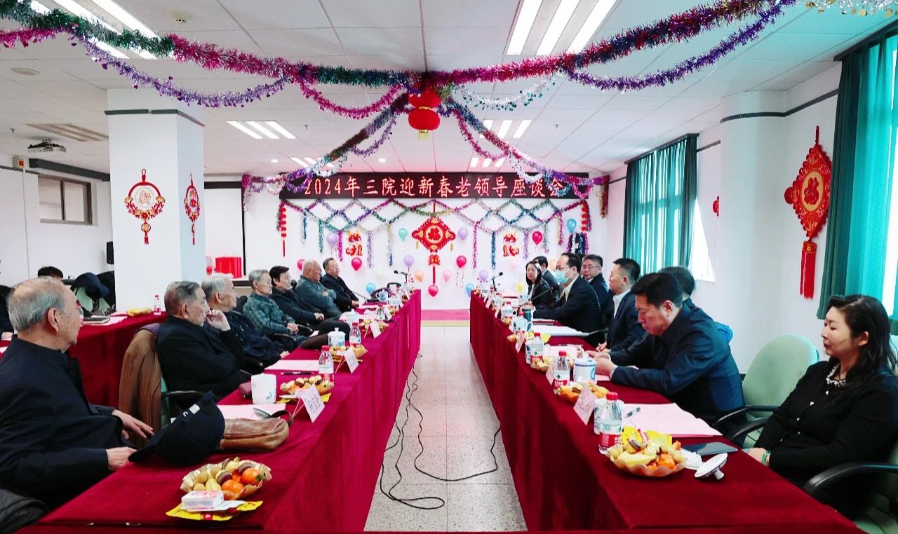 2月8日,在甲辰龙年即将到来之际,三院举办迎新春老领导座谈会,院党委书记史新兴、党委副书记崔玉平、总会计师王大伟、纪委书记樊伟和院本部有关部门负责人与老领导许祖凯、沈东、韩玉民、沈伯南、倪树敏,老专家黄瑞松、杨宝奎等相聚一堂,共谈三院改革发展,共话新春美好愿景。座谈会由崔玉平主持。