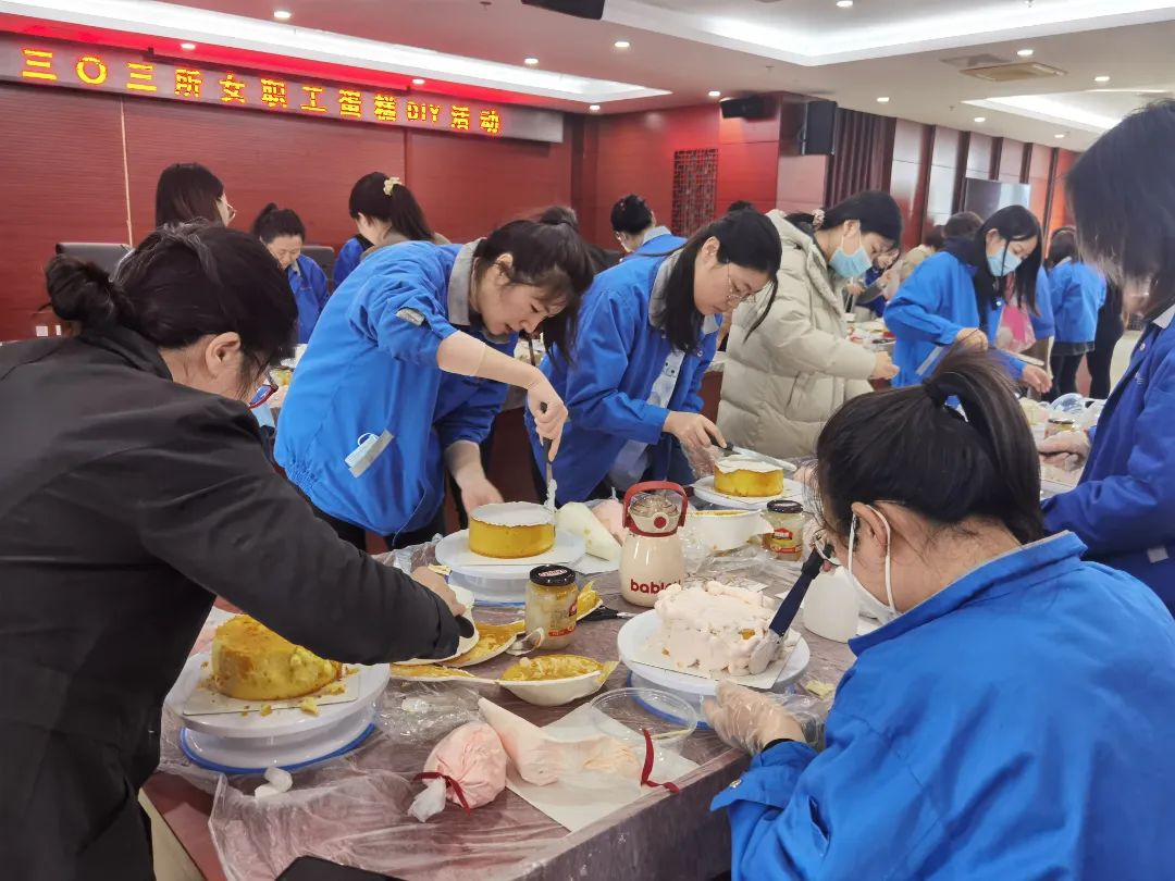303所工会举办“浓情三月 甜蜜相约”女职工蛋糕DIY活动。180余名女职工在温馨和谐的节日氛围中,展现热爱生活、积极向上的新时代女性风采。随着成品一个个“出炉”,现场一片欢声笑语,到处弥漫着浓郁的奶油蛋糕和快乐幸福的味道。