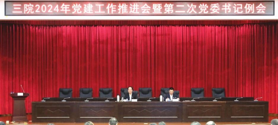 3月29日,三院召开2024年党建工作推进会暨第二次党委书记例会。三院党委书记史新兴,党委副书记崔玉平出席会议。院本部相关部门负责人,院属各单位党委书记、党委副书记、纪委书记、工会主席和相关部门负责人分别在主会场和视频分会场参加会议。