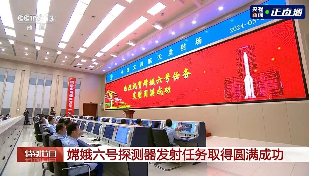 5月3日17时27分,嫦娥六号探测器由长征五号遥八运载火箭在中国文昌航天发射场发射,之后准确进入地月转移轨道,发射任务取得圆满成功。嫦娥六号探测器由此开启世界首次月球背面采样返回之旅,预选着陆和采样区为月球背面南极-艾特肯盆地。