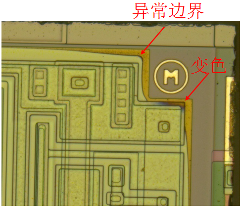 像往常一样,303所元器件可靠性中心DPA组对客户某对射型光耦(暂无使用问题)送样例行进行DPA(破坏性物理分析)实验,其中1只样品不仅存在异常材料的边界,且拐角处还呈现变色等反常形貌,这引起了工程师们的注意。大家查阅了所有相关的标准,均不适用于判别此光电器件表层薄膜材料的缺陷。从发现“问题”到分析“问题”,虽然探索未果,但是,工程师们没有放过这种“标准管不着的灰色地带”,为了将出现的异常原因彻底弄清楚,大家对该样品进行制样研磨,结合样品平面SEM分析结果得出,异常材料边界是由于相关材料“铟”缺失导致。