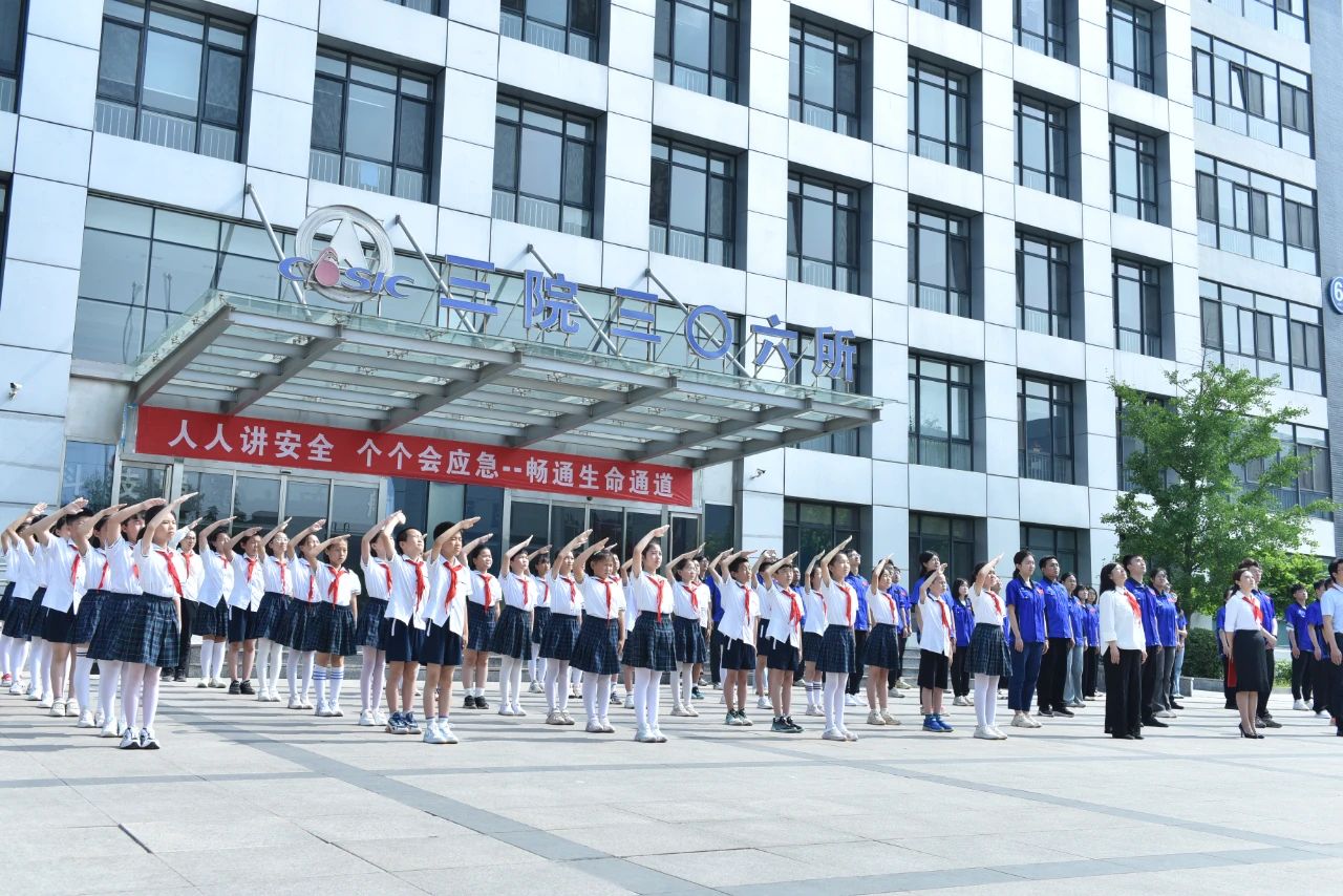 6月13日上午,由全国少工委联合中国载人航天工程新闻宣传办公室举办的“红领巾爱祖国——我心中的五星红旗”国旗传递活动(地面传递第4站)在三院306所举行。本部相关部门领导、306所领导,首都师范大学附属云岗小学领导,306所科研人员代表、云岗小学少先队员代表共80余人参加升旗仪式。