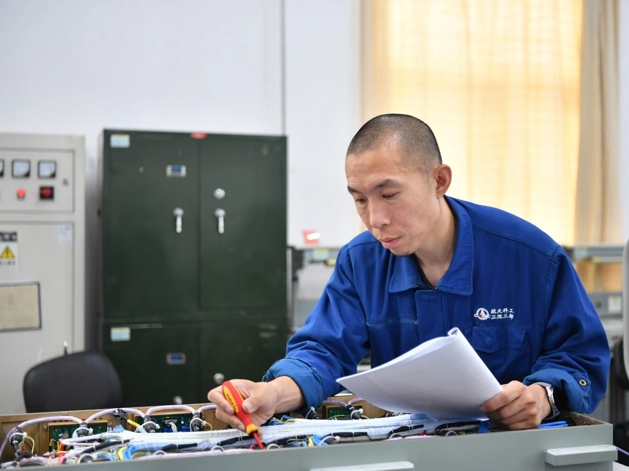 “等等,这个电缆不太对劲,摸着有点热。”一次, 在对电源的调试过程中,调试负责人武师傅突然察觉到试验电缆的异常。其他人员也都去摸了摸,但是都没摸出异样,开玩笑的说:是不是你的温度比别人低?但是武师傅不顾大家质疑,仍然坚持暂停调试,先排查电缆的发热问题,即使调试任务本身就很紧张也不能再往下进行。在他的带领下,大家分段进行排查,最终发现外协电缆存在虚焊,导致了发热问题,进而消除了设备调试、试验过程中的质量隐患和安全隐患。