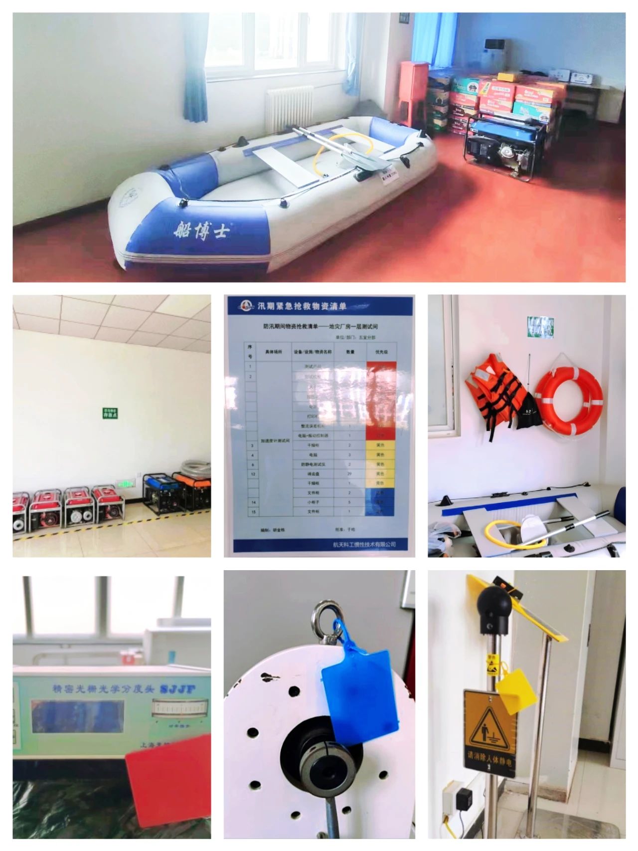 在冀单位总结以往洪涝灾害应对过程中的经验和教训,通过修订防汛应急预案、补充防汛物资等形式,落实防汛抗洪准备工作。在园区内设立多处应急避险场所,常备应急食物、药品,有针对性地开展应急演练,同时将需抢救物资按照优先级分为红、黄、蓝三个级别,进一步提升“防控”精准性,提升“抗灾”针对性。