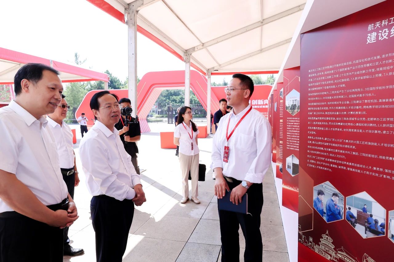 来自三院的国家级技能大师工作室带头人李军以《为国铸剑 成就梦想》为题展示了工匠学院精品课程,全国劳模、大国工匠高凤林就上课内容进行现场点评。活动过程中,与会人员还参观了三院工匠学院等地。