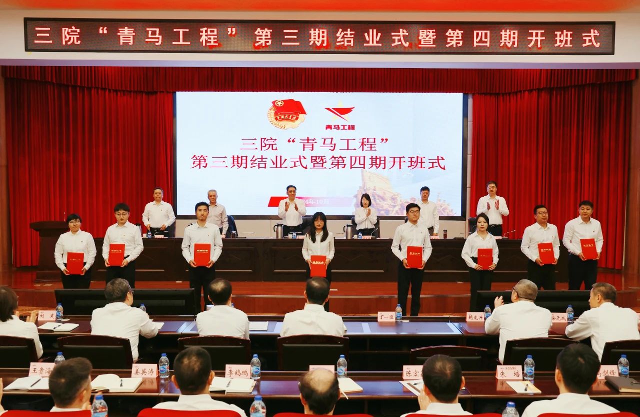 10月12日,三院举办青年马克思主义者培养工程第三期结业式暨第四期开班式。三院党委书记施毅、院长助理赵连元、院本部相关部门领导、院属单位党委主要领导、青马导师、团委书记、第三期和第四期青马学员及优秀青年代表等参加会议。