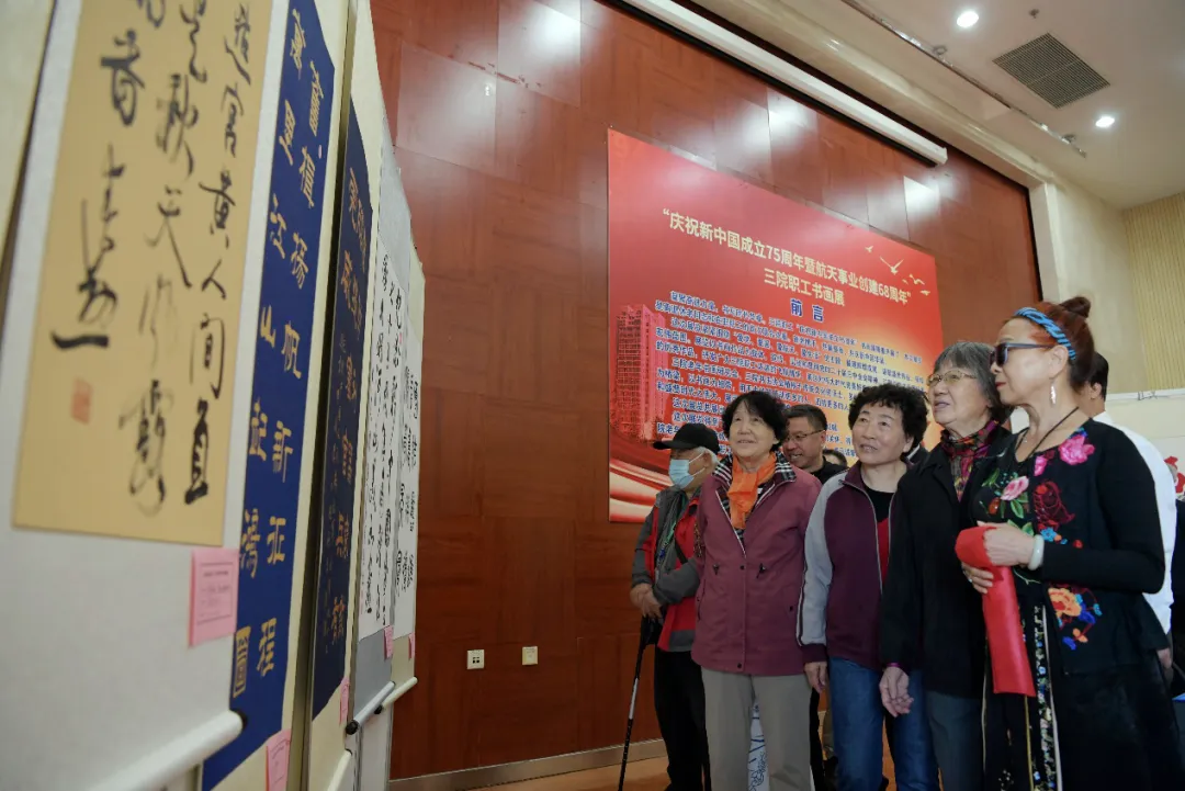 三院举办“庆祝中华人民共和国成立75周年暨航天事业创建68周年职工书画展”,展现辉煌成就,讴歌盛世伟业,描绘宏伟蓝图。展览以离退休职工书画作品为载体,抒发广大三院离退休职工浓浓的飞航情怀,表达对伟大时代的美好祝愿。