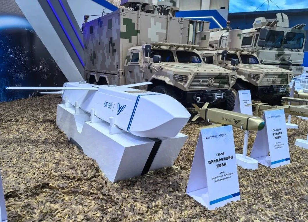 首秀登场的CM-98是根据国际市场需求研制的一型隐身多用途导弹武器系统,可在防区外遂行打击对方机场跑道、停机坪、技术兵器阵地等高价值目标,具有全天时、全天候使用,高隐身穿透、抗干扰突防、宽飞行包络、高效能毁伤、易于维护保障等特点。