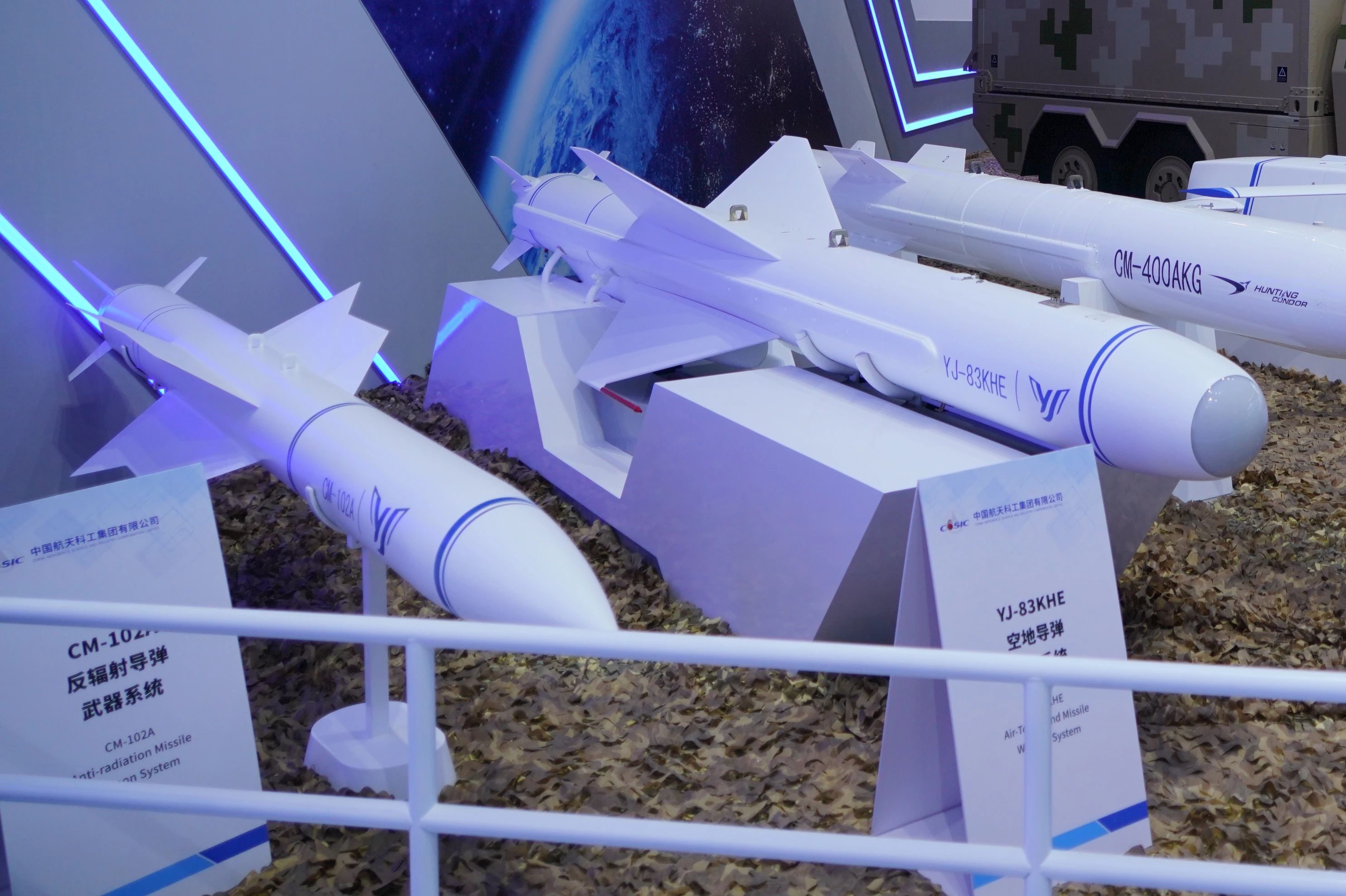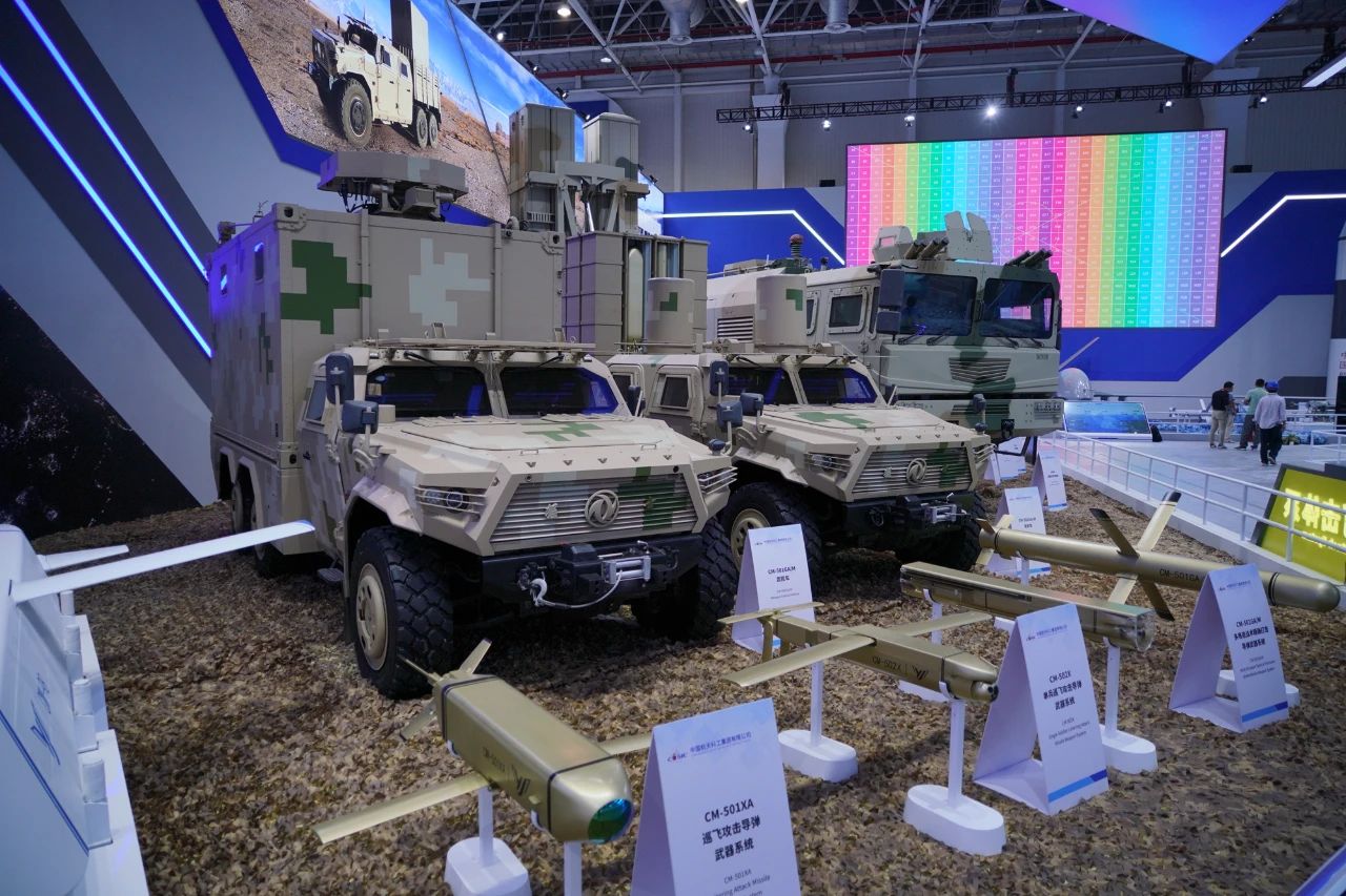 其中,CM-98隐身多用途导弹、CM-502X单兵巡飞攻击导弹均为首次亮相。CM-98是根据国际市场需求研制的一型隐身多用途导弹武器系统,可在防区外遂行打击对方高价值目标,具有全天时、全天候使用,高隐身穿透、抗干扰突防、宽飞行包络、高效能毁伤、易于维护保障等特点。CM-502X能够高效打击重型主战坦克,具有灵巧打击、多模式简易发射等特点。
