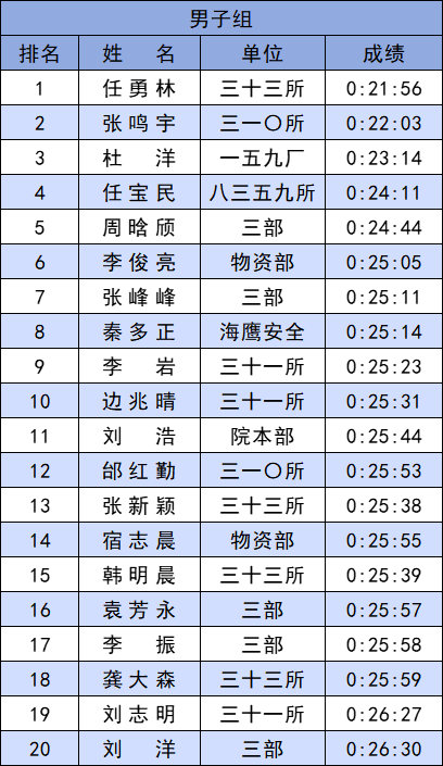 比赛结束后,对个人赛中男子前20名和女子前20名队员进行了颁奖。