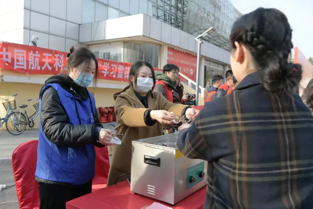 ▲303所团委举办了“明亮视界 与爱同行”志愿服务活动,为所内职工提供更换鼻托和超声波清洗眼镜服务。