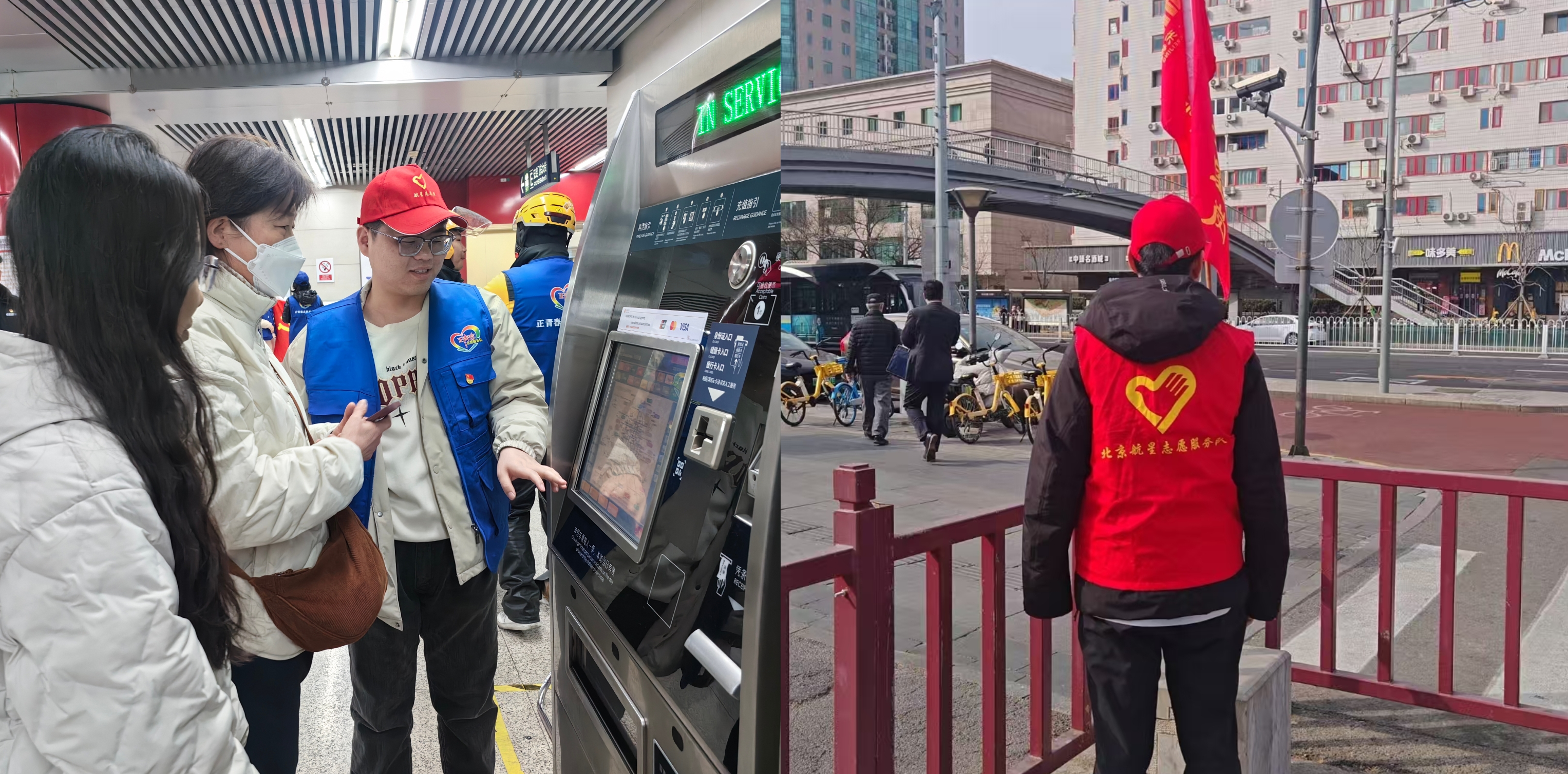 ▲239厂青年在地铁站进行志愿指引、在十字路口配合维持秩序,彰显青年担当。