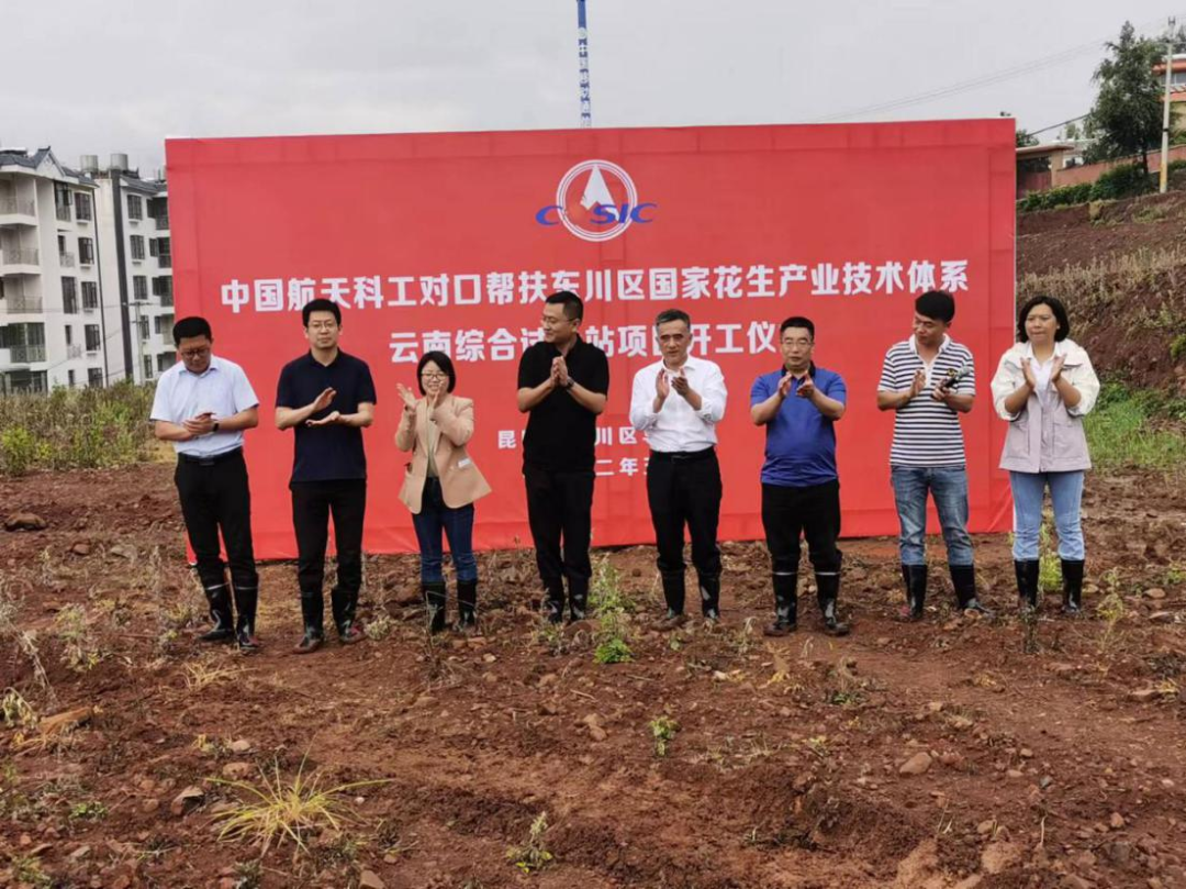 东川区位于昆明市最北端,是昆明市唯一的干热河谷地区,受季节性干旱和积温偏低影响,当地长期种植的花生品种老化、品质差、产量产值低,亟需引进花生新品种、发展种植新技术、壮大特色农业。2020年起,航天科工引进云南省农科院先进技术成果,帮扶建设国家花生产业技术体系云南综合试验站,建设七彩花生等96种特色新品种种植、试验基地及15亩智能大棚,实现七彩花生育种时间缩短三分之一,亩年产值达4.2万元。在此基础上,协调2500克花生种子于2024年搭载“实践十九号”卫星进行太空育种,助力实施“种业振兴”行动。积极培育当地龙头企业和致富带头人,帮助企业拓展销售渠道,建设冷链仓储物流和初加工生产能力,构建“产供销”一体化的生产体系。助力发展“订单农业”“保底回收”,开展线上带货,产销结合,实现基地种植、农户参与、电商联通,确保“小生产”与“大市场”无缝对接。